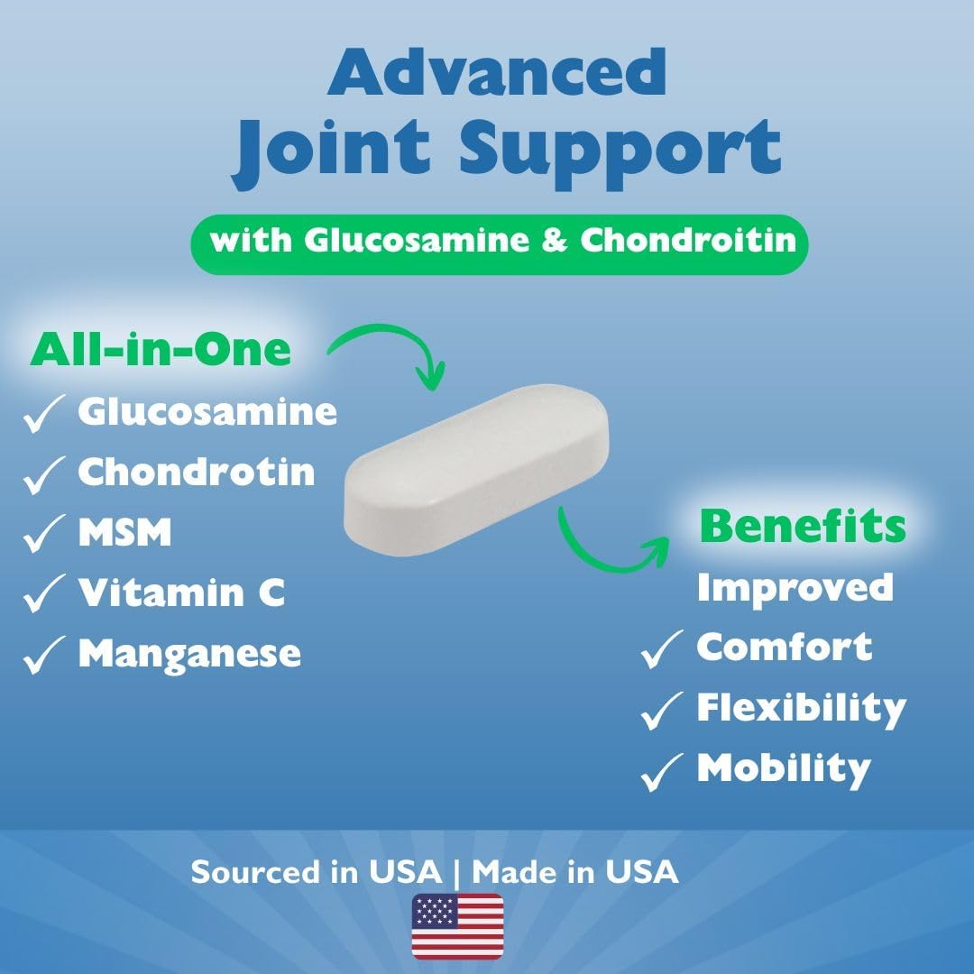 Complete Joint Assist: Combines vegetarian-sourced glucosamine, bovine-derived chondroitin, OptiMSM, Ester-C, and manganese to assist joint well being, flexibility, and total mobility.